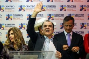 FILE PHOTO: Colombia’s Centro Democratico party presidential candidate Oscar Ivan Zuluaga reacts after winning the party’s internal consultation, in Bogota, Colombia November 22, 2021. REUTERS/Luisa Gonzalez/File Photo