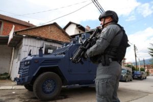 Kosovo special police officer stands by, after the arrest of a Serb identified as an organiser of violent protests last month, in Mitrovica, Kosovo June 13, 2023. REUTERS/Fatos Bytyci