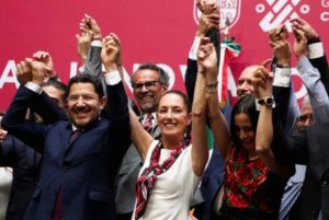 Outgoing Mexico City Mayor Claudia Sheinbaum holds a press conference