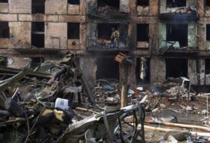 A rescuer works at the site of a residential building heavily damaged by a Russian missile strike, amid Russia’s attack on Ukraine, in Kryvyi Rih, Dnipropetrovsk region, Ukraine June 13, 2023. REUTERS/Andrii Dubchak