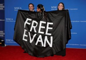 FILE PHOTO: Washington Post reporter Vivian Salama wears a cape reading “Free Evan”, referring to detained Wall Street Journal reporter Evan Gershkovich who was arrested on March 30 in Russia and subsequently charged with espionage, a charge he has denied, on the red carpet arriving for the annual White House Correspondents’ Association (WHCA) Dinner in Washington, U.S., April 29, 2023. REUTERS/Tom Brenner/File Photo