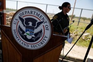 FILE PHOTO: The seal of the U.S. Department of Homeland Security is seen after a news conference near the International Bridge between Mexico and the U.S., as U.S. authorities accelerate removal of migrants at border with Mexico, in Del Rio, Texas, U.S., September 19, 2021. REUTERS/Marco Bello