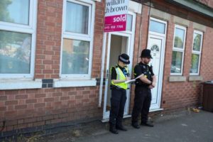 Police officers stand next to a building following a major incident in Nottingham city centre, Nottingham, Britain, June 13, 2023. REUTERS/Phil Noble