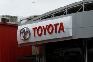 FILE PHOTO: Toyota logo is seen at a Toyota Society