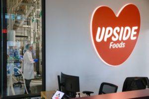 FILE PHOTO: A logo of The UPSIDE Foods plant, where lab-grown meat is cultivated, is seen in Emeryville, California, U.S. January 11, 2023. REUTERS/Peter DaSilva