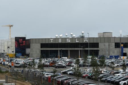 BERLIN (Reuters) -Tesla will hire fewer temporary workers at its plant outside Berlin than it did in its ramp-up phase and refrain from Saturday shifts, but it is still on track to achieve its production targets, the company said on Thursday.