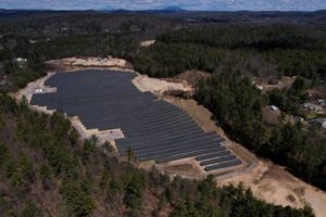 FILE PHOTO: Solar panels are arrayed on Earth Day in Athol, Massachusetts, U.S., April 22, 2022. Picture taken with a drone. REUTERS/Brian Snyder/File Photo