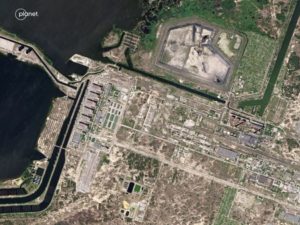 A satellite image shows the water level of the Dnipro river near the Zaporizhzhia Nuclear Power Plant, in Enerhodar, Zaporizhzhia Region, Ukraine June 4, 2023. Planet Labs PBC/Handout via REUTERS