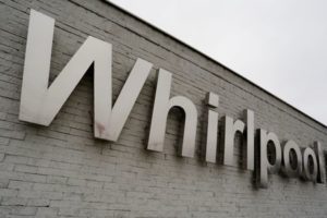 The Whirlpool logo is seen at their plant in Apodaca,