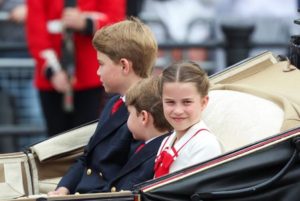 Britain’s Prince George, Prince Louis and Princess Charlotte attend the Trooping the Colour parade to honour Britain’s King Charles on his official birthday in London, Britain, June 17, 2023. REUTERS/Toby Melville
