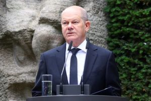 FILE PHOTO: German Chancellor Olaf Scholz gives a speech to commemorate the 70th anniversary of the East German uprising of the June 17, 1953, in Berlin, Germany June 17, 2023. REUTERS/Fabrizio Bensch/File Photo