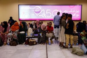 People, who were evacuated from Sudan by an Iraqi military aircraft, are seen at Baghdad International Airport in Baghdad, Iraq, June 18, 2023. REUTERS/Saba Kareem