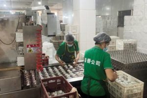 Workers package eggs with a packaging machine at Ruichang City Yixiang Agricultural Products factory in Ruichang, Jiangxi province, China May 30, 2023. REUTERS/David Kirton
