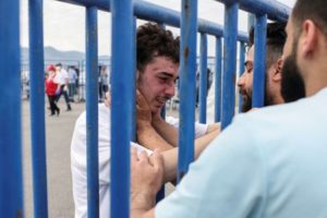 Syrian survivor Fedi, 18, who was rescued with other refugees and migrants at open sea off Greece after their boat capsized, cries as he reunites with his brother Mohammad, who came to meet him from Italy, at the port of Kalamata, Greece, June 16, 2023. REUTERS/Stelios Misinas