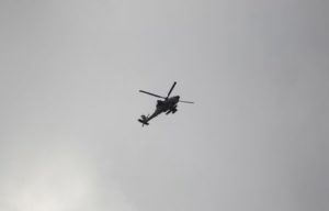 A helicopter flies during an Israeli raid in Jenin, in the Israeli-occupied West Bank June 19, 2023. REUTERS/Raneen Sawafta