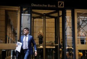A man holding an envelope walks out of the lobby of the U.S. headquarters of Deutsche Bank in New York City, U.S., July 8, 2019. REUTERS/Andrew Kelly