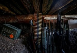 FILE PHOTO: Weapons of Ukrainian service members are seen in a trench at position at a front line, amid Russia’s attack on Ukraine, in Donetsk region, Ukraine May 5, 2023. Ukraine Radio Free Europe/Radio Liberty/Serhii Nuzhnenko via REUTERS/File Photo