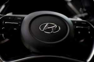 FILE PHOTO: The logo of Hyundai Motors is seen on a steering wheel on display at the company’s headquarters in Seoul, South Korea, March 22, 2019. REUTERS/Kim Hong-Ji/File Photo