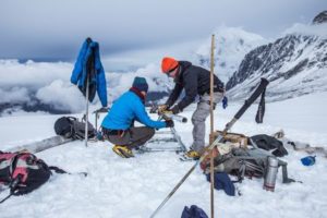 Researchers build a weather station on Yala glacier, Nepal in this undated handout image. Jitendra Raj Bajracharya/ICIMOD/Handout via REUTERS