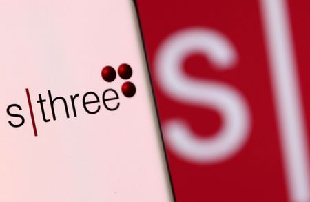 FILE PHOTO: Illustration shows smartphone with SThree's logo displayed