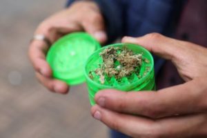 A man holds a handful of marijuana in front of the Colombian Congress, during a demonstration in favor of the regulation of marijuana for adult use in Bogota, Colombia June 20, 2023. REUTERS/Luisa Gonzalez