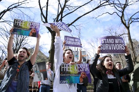 FILE PHOTO: Protesters demonstrate in support of the singer Kesha outside of Sony headquarters in New York