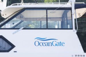 A view of a boat with OceanGate branding within the boatyard near the company headquarters at the Port of Everett complex in Everett, Washington, U.S., June 22, 2023. REUTERS/Matt Mills McKnight