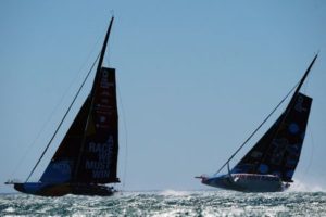 FILE PHOTO: Sailing – The Ocean Race – Leg 3 – Cape Town to Itajai – Cape Town, South Africa – February 26, 2023 Team Malizia and 11th Hour Racing Team in action during leg 3 REUTERS/Nic Bothma/File Photo