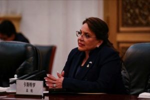 FILE PHOTO: Honduran President Xiomara Castro attends a meeting with Chinese Premier Li Qiang (not pictured) at the Great Hall of the People in Beijing on June 13, 2023. JADE GAO/Pool via REUTERS./File Photo