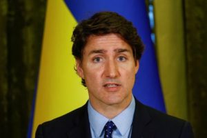 FILE PHOTO: Canadian Prime Minister Justin Trudeau speaks during a joint press conference with Ukraine’s President Volodymyr Zelenskiy, amid Russia’s attack on Ukraine, in Kyiv, Ukraine June 10, 2023. REUTERS/Valentyn Ogirenko