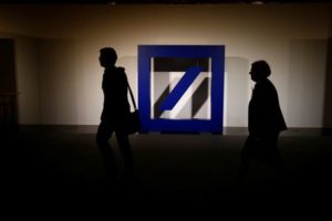 The logo of Deutsche Bank is seen at its headquarters ahead of the bank’s annual general meeting in Frankfurt, Germany May 18, 2017. REUTERS/Ralph Orlowski