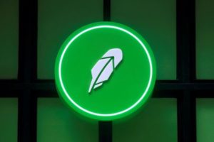 FILE PHOTO: The logo of Robinhood Markets, Inc. is seen at a pop-up event on Wall Street after the company’s IPO in New York City, U.S., July 29, 2021. REUTERS/Andrew Kelly