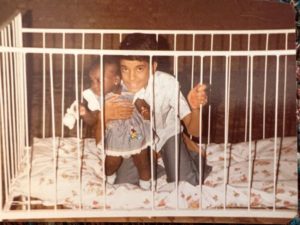 An undated handout image shows Kholoud Yagoob Abdallah when she was a toddler with her adopted brother in Khartoum, Sudan. Courtesy of Sam Atabani/Handout via REUTERS