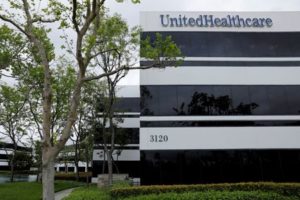 FILE PHOTO: The corporate logo of the UnitedHealth Group appears on the side of one of their office buildings in Santa Ana, California, U.S., April 13, 2020. REUTERS/Mike Blake/File Photo
