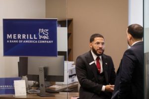 Bank of America employees speak with each other at a financial center in New York City, U.S., June 26, 2023. REUTERS/Brendan McDermid