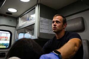 Firefighter EMT William Dorsey treats a migrant woman suffering from heat exhaustion in the border community of Eagle Pass, Texas, U.S. June 26, 2023. REUTERS/Kaylee Greenlee Beal
