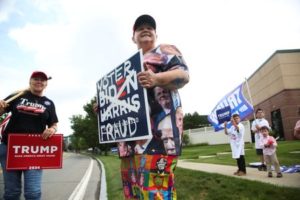 Jessica Morin and Linda Lambert hold signs in support of former U.S. President and Republican presidential candidate Donald Trump outside the New Hampshire Federation of Republican Women Lilac Luncheon in Concord, New Hampshire, U.S., June 27, 2023. REUTERS/Reba Saldanha