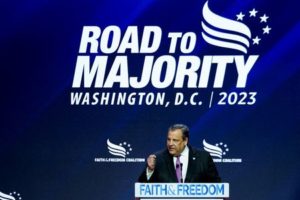 Republican U.S. presidential candidate and former New Jersey Gov. Chris Christie addresses The Faith and Freedom Coalition’s 2023 “Road to Majority” conference in Washington, U.S., June 23, 2023. REUTERS/Elizabeth Frantz