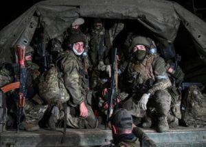 FILE PHOTO: Fighters of Wagner private mercenary group, including Roman Yamalutdinov (L), pull out of the headquarters of the Southern Military District to return to base, in the city of Rostov-on-Don, Russia, June 24, 2023. REUTERS/Stringer/File Photo