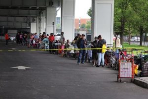 FILE PHOTO: Residents wait in line for free groceries from the twice-per-week food pantry run by La Colaborativa, a Latina-led organization founded in 1988 to serve immigrant communities around Boston, in Chelsea, Massachusetts, U.S., June 23, 2023. REUTERS/Brian Snyder/File Photo