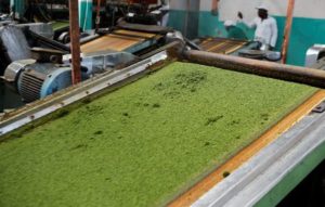 Shredded green tea leaves are processed in a fermenting machine at the Kambaa Tea Factory in Githunguri, Kiambu County, Kenya June 8, 2023. REUTERS/Monicah Mwangi