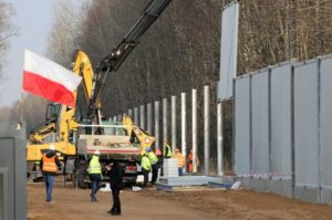 FILE PHOTO: The construction site of a barrier at the border between Poland and Belarus is seen in Tolcze near Kuznica, Poland, February 16, 2022. Grzegorz DabrowskiAgencja Wyborcza.pl via REUTERS/File Photo