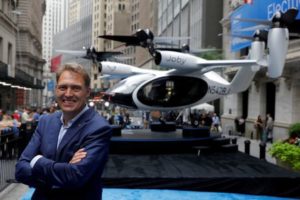 FILE PHOTO: Joby Aviation founder JoeBen Bevirt poses next to a Joby Aviation Air Taxi ahead of their listing at the New York Stock Exchange (NYSE) in Manhattan, New York City, U.S., August 11, 2021. REUTERS/Andrew Kelly/File Photo