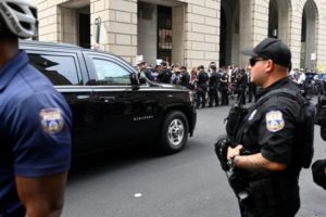 Protestors await the arrival of former U.S. President Donald Trump as he is scheduled to speak at the Moms for Liberty summit in Philadelphia, Pennsylvania, U.S., June 30, 2023. REUTERS/Bastiaan Slabbers