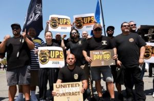 FILE PHOTO: United Parcel Service and the Teamsters hold a rally before before the beginning of the largest U.S. private sector labor contract talks covering more than 330,000 U.S. drivers, package handlers and loaders at the global delivery firm, in Orange, California, U.S. April 15, 2023. REUTERS/Aude Guerrucci/File Photo