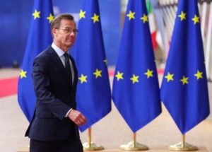 Swedish Prime Minister Ulf Kristersson attends the European Union leaders summit in Brussels, Belgium June 29, 2023. REUTERS/Johanna Geron