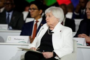 FILE PHOTO: U.S. Treasury Secretary Janet Yellen listens during the closing session of the New Global Financial Pact Summit, Friday, June 23, 2023 in Paris, France. Lewis Joly/Pool via REUTERS/File Photo