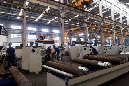 Employees work at Jingjin filter press factory in Dezhou
