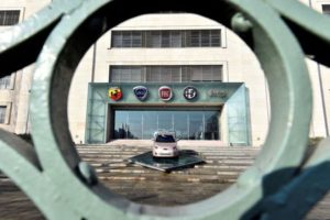 FILE PHOTO: The logo of Stellantis, the world’s fourth-largest automaker which starts trading in Milan and Paris after Fiat Chrysler and Peugeot maker PSA finalised their merger, is seen next to a car displayed at the main entrance of FCA Mirafiori plant in Turin, Italy, January 18, 2021. REUTERS/Massimo Pinca/File Photo/File Photo