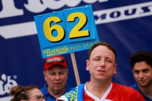 World Champion Joey Chestnut looks on, on the day of 2023 Nathan’s Famous Fourth of July International Hot Dog Eating Contest at Coney Island in New York City, U.S., July 4, 2023. REUTERS/Amr Alfiky